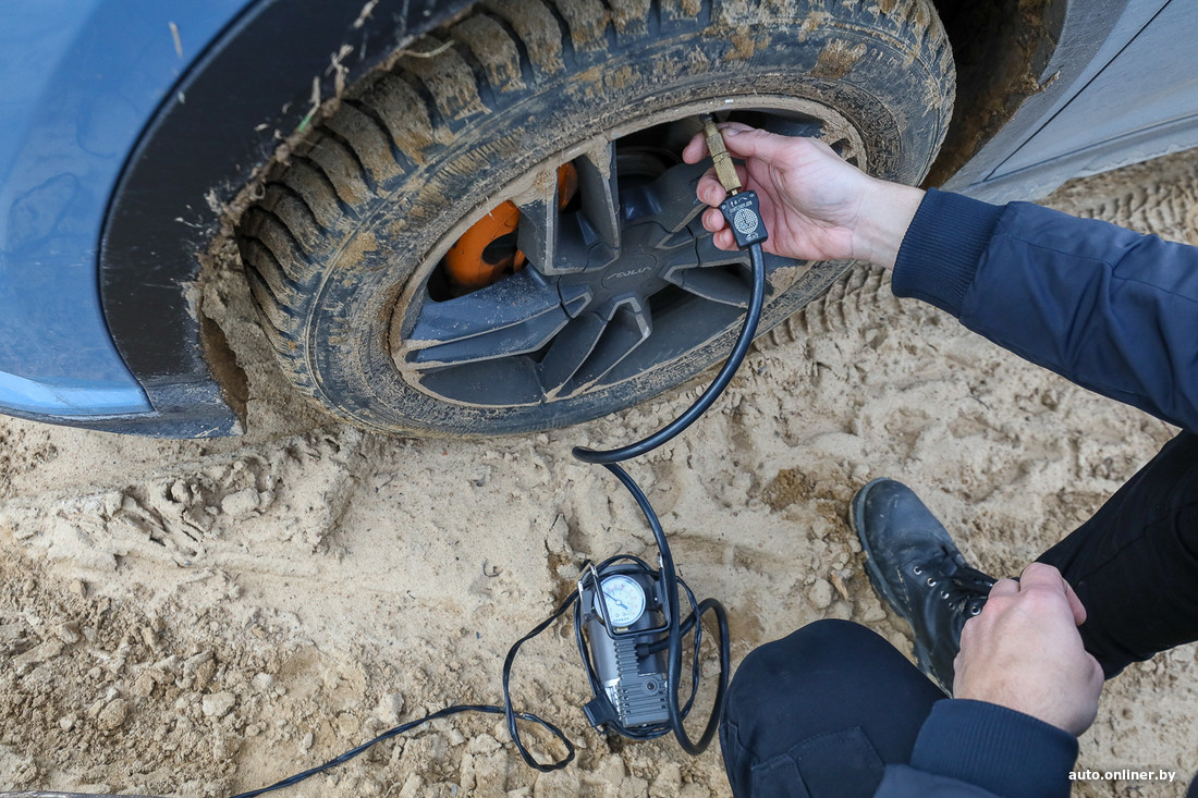 Прямо в дороге — снизить давление в колесах примерно до 1,2—1,5 бара, что улучшит сцепление на мягком грунте. Если дорожного просвета не хватает, попросите всех пассажиров выйти — получите пару дополнительных сантиметров клиренса. Те же пассажиры помогут сдвинуть автомобиль с места, особенно если синхронизировать их помощь с правильной раскачкой.