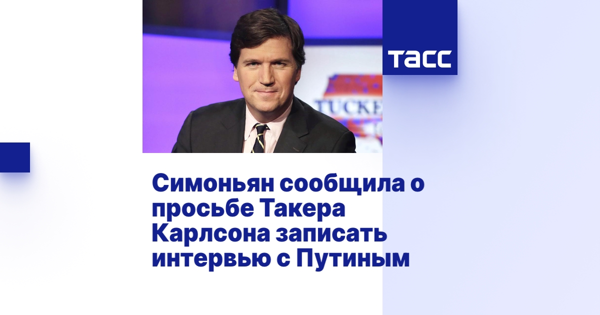 ТАСС, 27 августа. Американский политический тележурналист Такер Карлсон попросил об интервью с президентом России Владимиром Путиным. Такой информацией в воскресенье поделилась главред RT Маргарита Симоньян.
