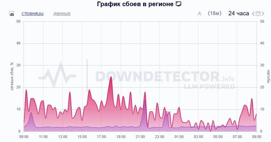 Сайт downdetector по-прежнему фиксирует жалобы красноярцев. Портал регистрирует 37 жалоб в час и 871 в сутки.