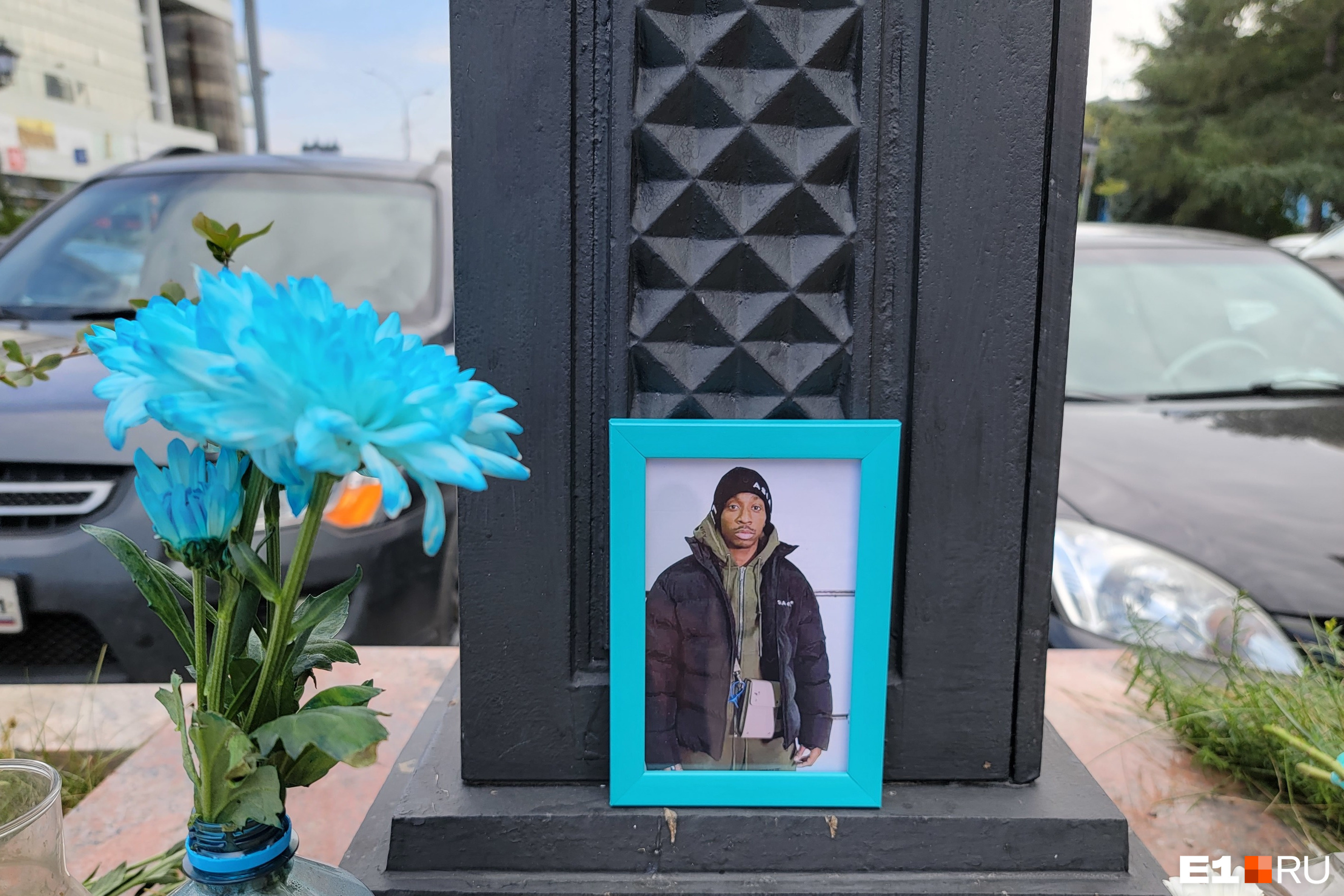 В Екатеринбурге к «Бургер Кингу» на перекрестке улиц Малышева и 8 Марта принесли цветы в память об убитом аспиранте УрФУ Франсуа Нджелассили. Несколько букетов и фотография Франсуа стоят на клумбе-парапете перед зданием «Рубина».