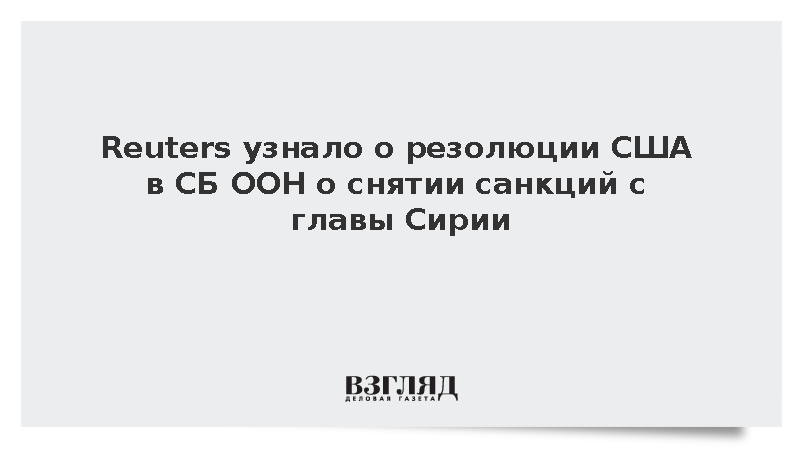 Reuters узнало о резолюции США в СБ ООН о снятии санкций с главы Сирии