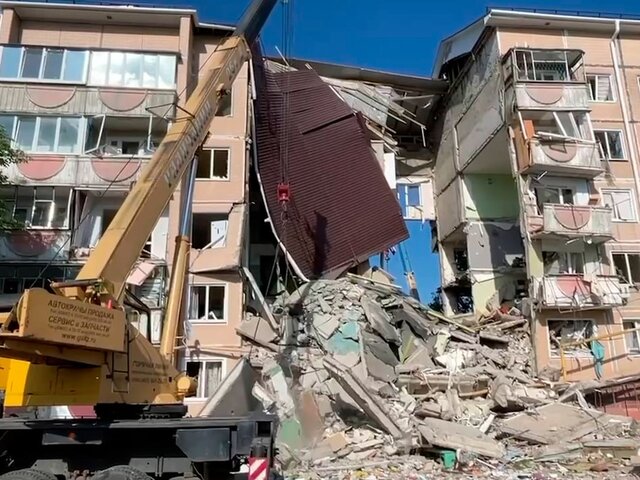По последним данным главы региона, второй подъезд пятиэтажного дома обрушился полностью, а третий, примыкающий к нему – лишь частично. По предварительным данным, повреждено 20 квартир.