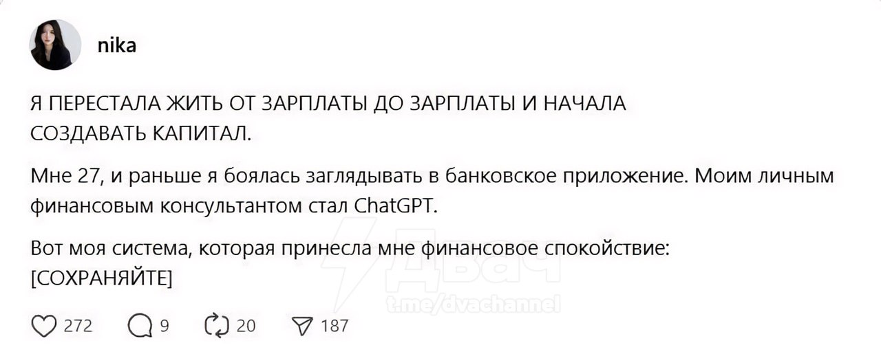 Как перестать жить от зарплаты до зарплаты с помощью 6️⃣ промптов для ChatGPT: тян показала, как превратить ИИ в личного финансового консультанта.