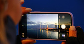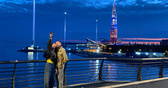 Сияющую праздничной подстветкой башню запечатлел фотограф «Фонтанки» вечером 11 июня. На фоне небоскреба, на Яхтенном мосту, уже собираются гуляющие для селфи с особенным фоном.