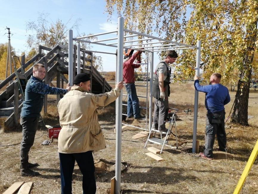 В последние выходные сентября комплекс смонтировали, установили в бетонное основание для обеспечения его безопасности при эксплуатации, покрасили все детали. В в сборке спортивного объекта общественникам активно помогала местная молодежь.