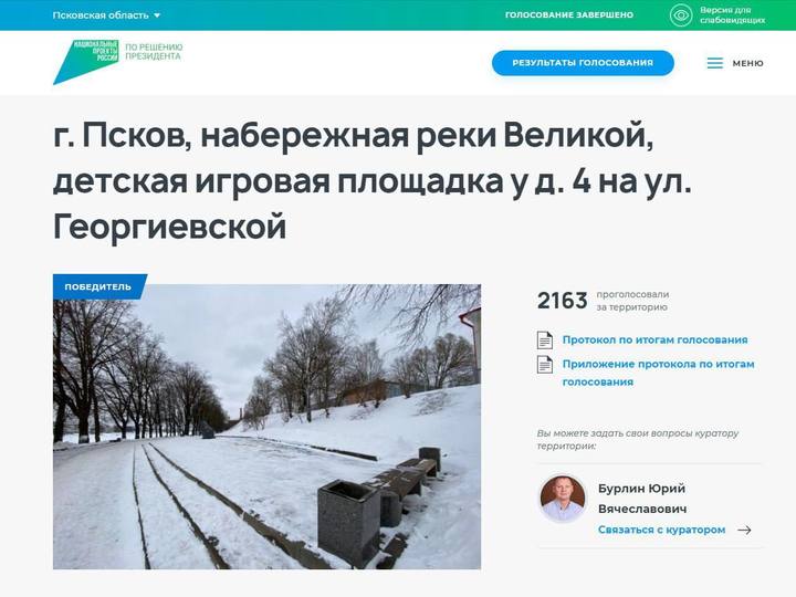 Борис Елкин поблагодарил псковичей за активность и отметил, что в этом году почти 17,7 тысяч псковичей приняли участие в голосовании. Все три объекта будут благоустроены в 2025 году.