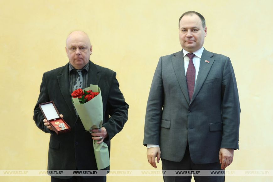 "Каждая церемония награждения по-своему уникальна и торжественна, но та, которая проходит в канун Нового года, конечно же, особенная. Вручение государственных наград по поручению Президента Беларуси в такой день наполняет наше мероприятие особым смыслом. Сегодняшняя церемония посвящается профессионалам своего дела за достижения и заслуги перед Родиной", - сказал Роман Головченко.