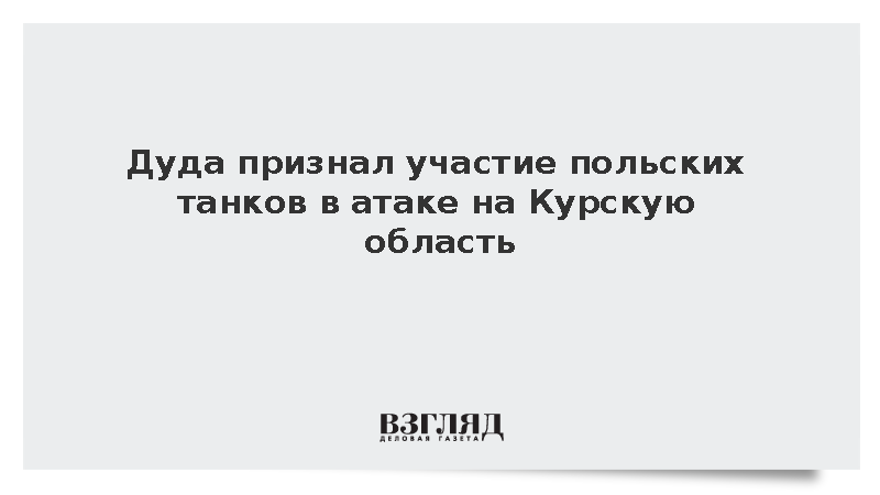 Польский президент Анджей Дуда заявил, что переданные Украине танки, которые отправила ранее Польша, участвуют в активной атаке ВСУ на Курскую область.