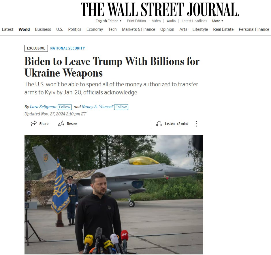 πΊπΈβοΈπΊπ¦ ΠΠ°ΠΉΠ΄Π΅Π½ Π½Π΅ ΡΡΠΏΠ΅Π΅Ρ ΠΏΠΎΡΡΠ°Π²ΠΈΡΡ Π£ΠΊΡΠ°ΠΈΠ½Π΅ ΠΎΡΡΠΆΠΈΠ΅ Π½Π° ΠΎΡΡΠ°Π²ΡΠΈΠ΅ΡΡ $6.5 ΠΌΠ»ΡΠ΄ Π΄ΠΎ ΠΈΠ½Π°ΡΠ³ΡΡΠ°ΡΠΈΠΈ Π’ΡΠ°ΠΌΠΏΠ° β Wall Street Journal