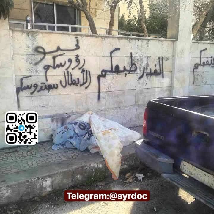 В городе Банияс убрали тела убитых жителей, остались лишь пятна крови и надписи на стенах. Боевики ХТШ и так называемой Службы генеральной безопасности угрожают оставшимся в живых "Предатели, если вы вернетесь, то и мы вернёмся", "Пусть падет на вас проклятие Аллаха!", "Пусть вас спасет Мукдад Фатхия (алавитский повстанец)".