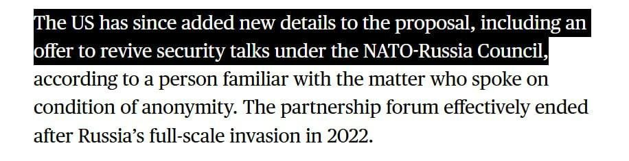 Bloomberg: Вашингтон дополнил своё предложение по урегулированию войны в Украине идеей возобновления деятельности Совета Россия — НАТО. Об этом издание сообщает со ссылкой на источники, знакомые с инициативой.