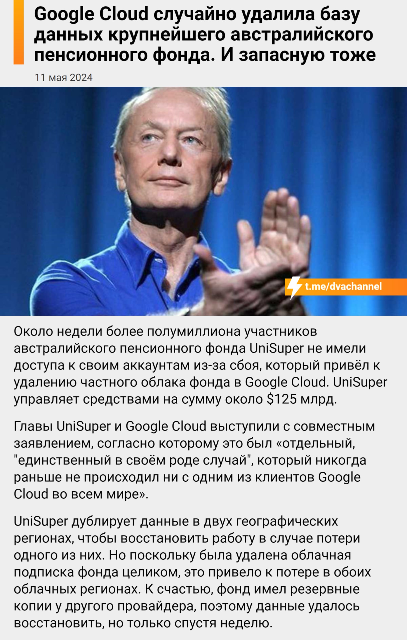 удалила базу данных крупнейшего австралийского пенсионного фонда.