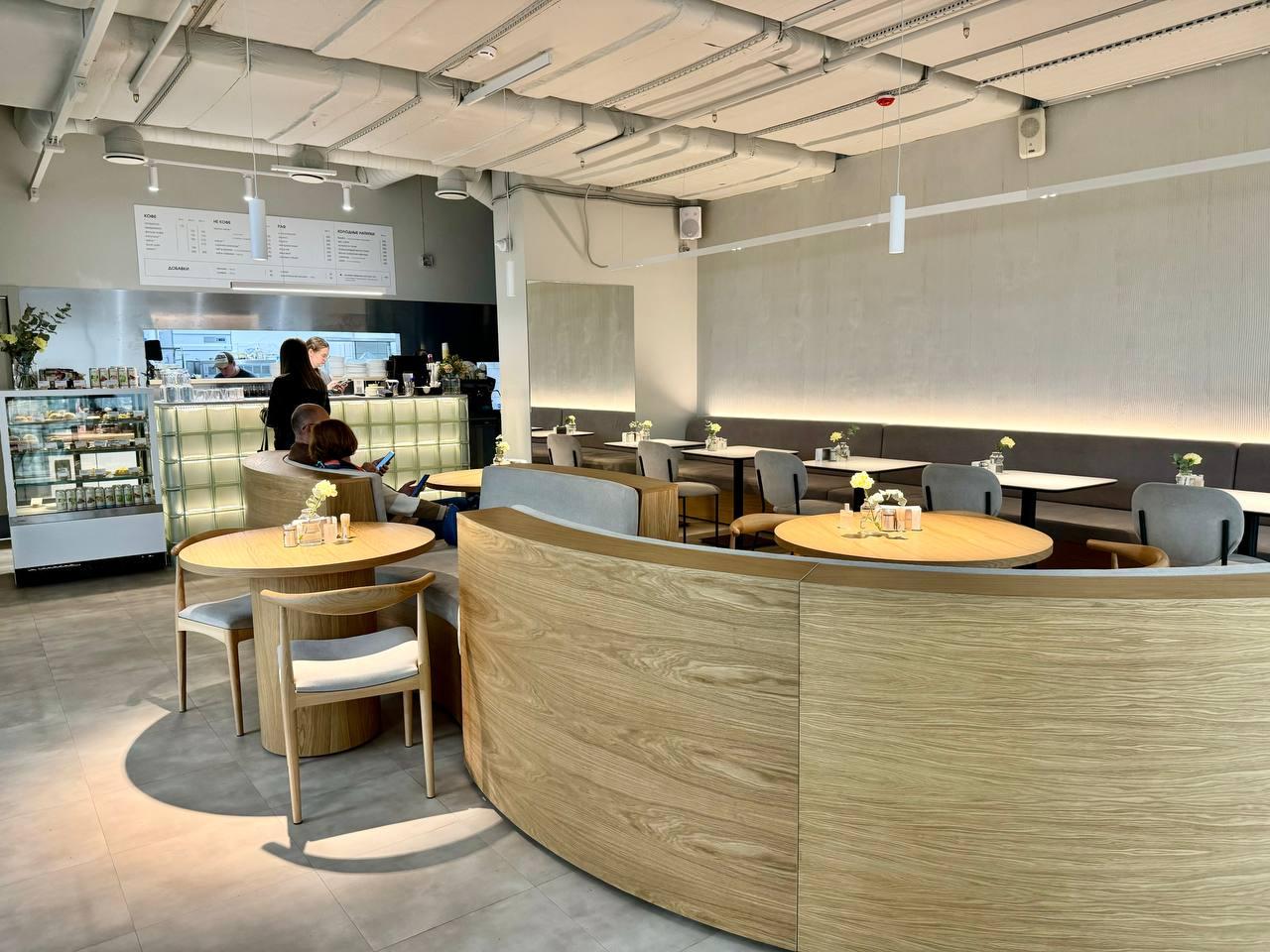Интерьер новой кофейни выполнен в светлых тонах