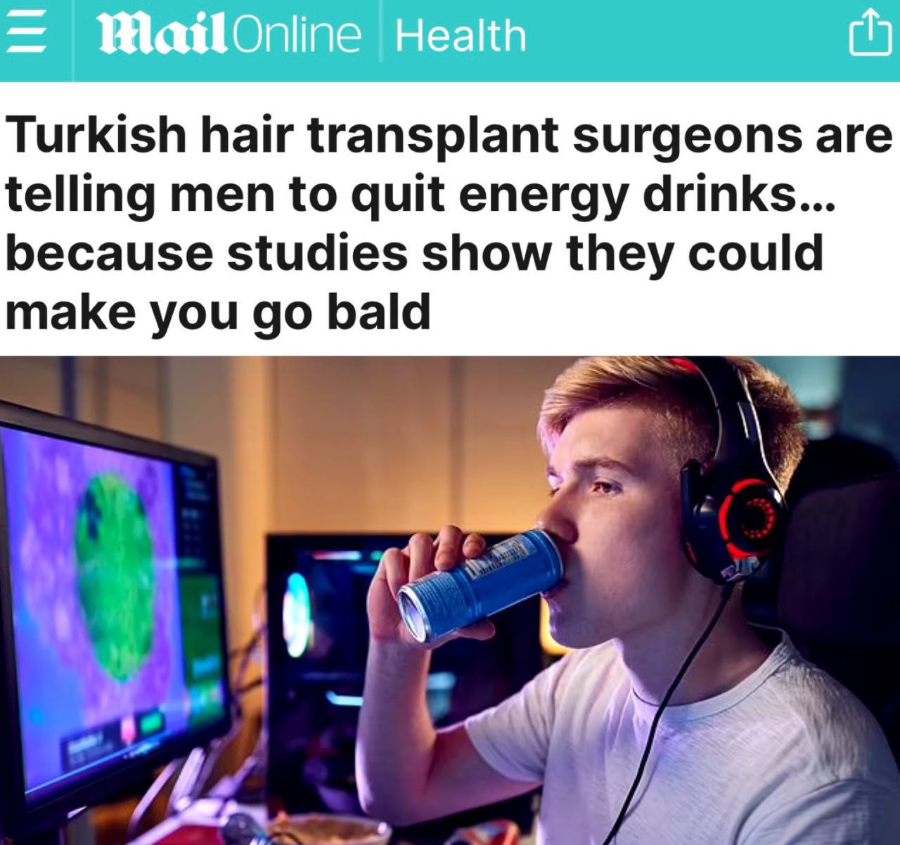 Таким образом выяснилось, что помимо других проблем со здоровьем, энергетики могут напрямую способствовать выпадению волос.