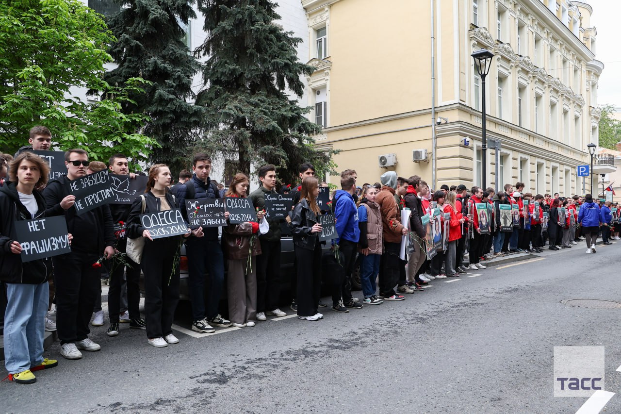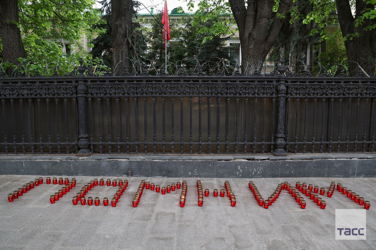 ❗️У закрытого украинского посольства в Леонтьевском переулке в Москве поминальными свечами выложено слово "Помним" в десятую годовщину событий в Одессе.