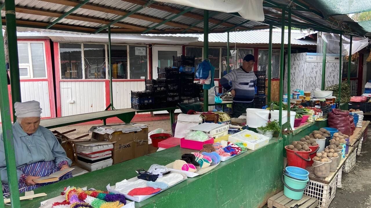 Кроме «крупных» продавцов, на рынке продолжают торговать бабушки. У них есть клубника в стаканчиках по 100 рублей, домашний козий сыр и вязаные пинетки. Кто-то приносит на прилавки старые семейные сервизы и другую кухонную мелочевку.