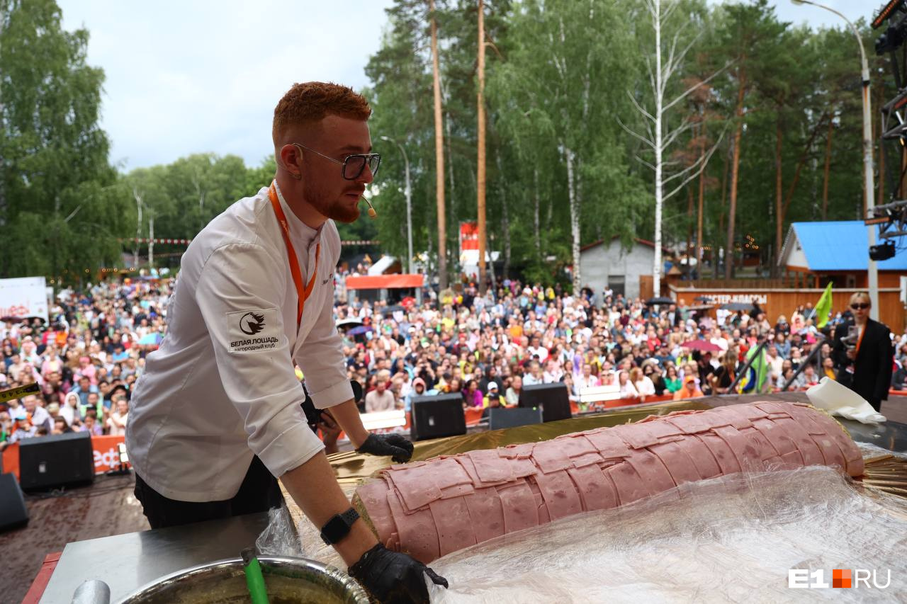 Шеф-повар Ивлев приготовил для екатеринбуржцев громадный рулет. Но они его не оценили