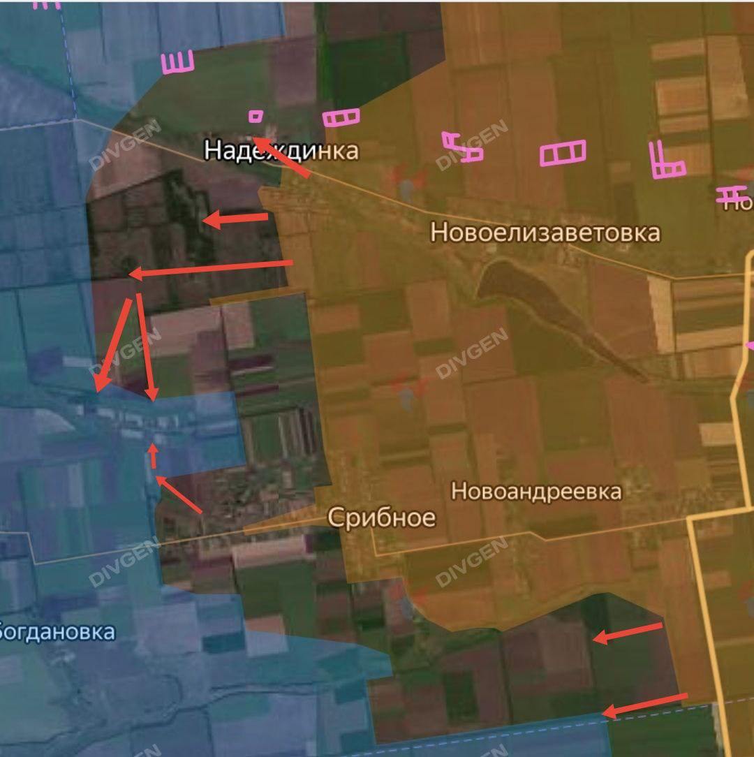 Юго-западнее Надеждинки подразделения ВС РФ штурмуют Преображенку с севера из посадок и юга со стороны Запорожья.