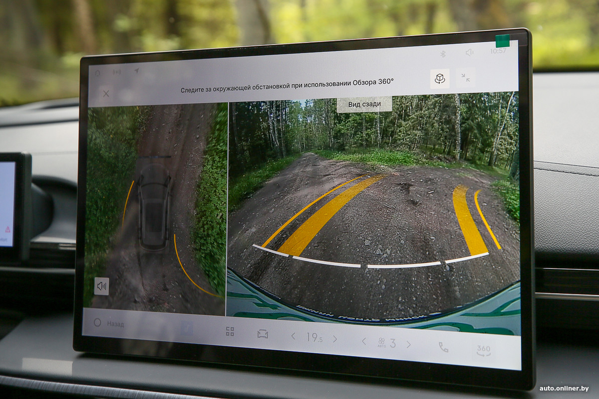 Однако эти особенности компенсируются системой кругового обзора, которая включается не только в момент парковки, но и во время остановки на светофоре с включенным поворотником — также типичное решение для современных моделей Geely и не только. Кстати, камеры оказались хорошим подспорьем на лесной дорожке, когда приходилось маневрировать в узких местах.