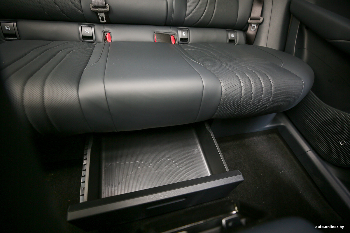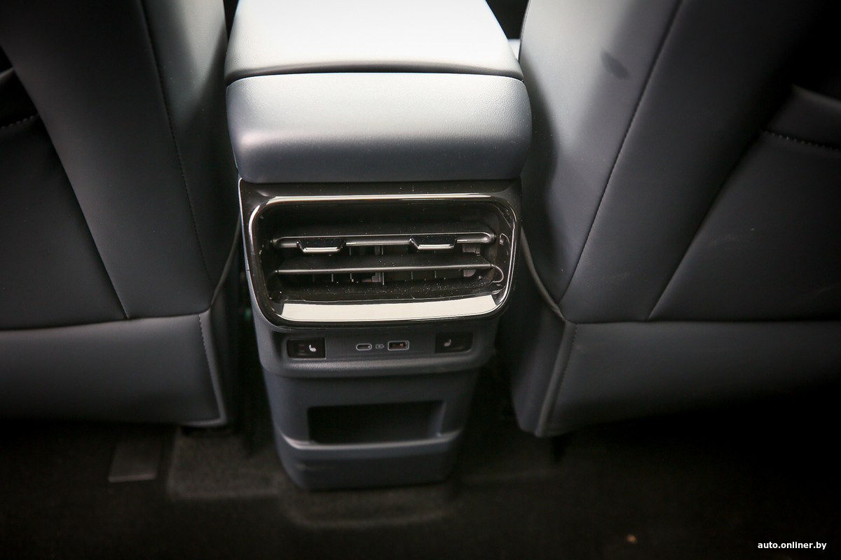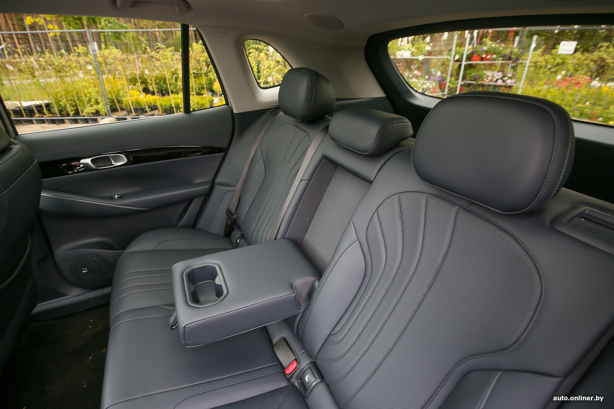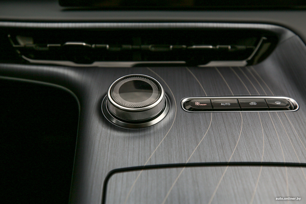 Вообще же стилистикой и отдельными деталями интерьер ЕХ5 также отсылает к старшей модели, хоть здесь и нет широченного (практически на всю переднюю панель) единого экрана.