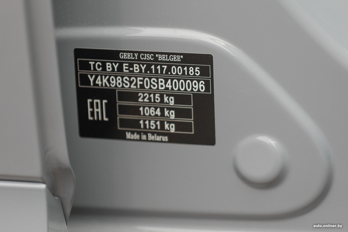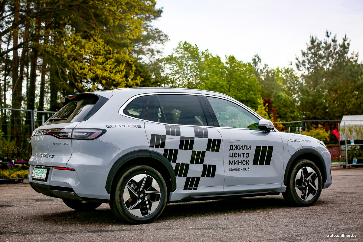 На табличке, размещенной в проеме двери, красуется надпись Made in Belarus, а в качестве производителя указан завод «БелДжи». Да, Geely EX5 — первый электромобиль белорусского производства. Его крупноузловая сборка, как видим, уже стартовала. Вчера состоялась официальная презентация. Но на тест машину мы взяли чуть раньше, а теперь рассказываем, что же собой представляет этот электрокроссовер и почему у него неплохие шансы стать одной из самых популярных «зеленых» моделей на нашем рынке.