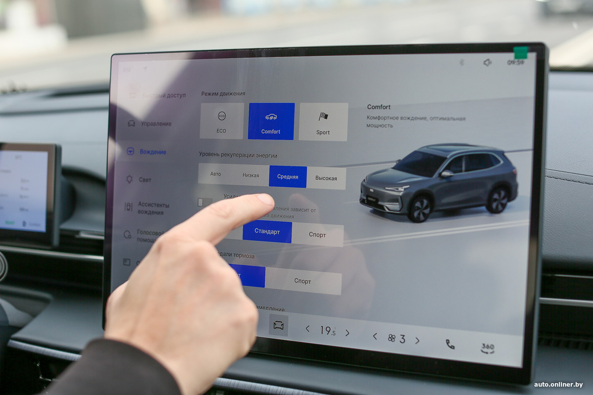 Но и 15,4-дюймовый тачскрин мультимедийной системы не кажется скромным ни по размерам, ни по быстродействию (скорость работы операционной системы Flyme OS вопросов не вызывает), ни по качеству картинки. Среди несомненных плюсов — заводская русификация. Жаль только, что вместо протоколов Android Auto и Apple CarPlay предлагается не столь удобный в использовании Сarbitlink.
