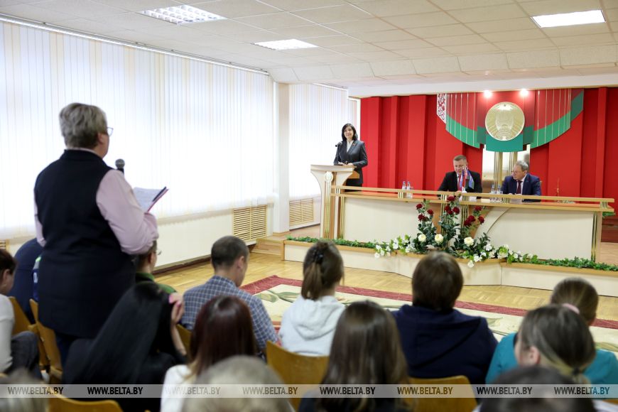 30 апреля, Верхнедвинский район /Алеся Пушнякова - БЕЛТА/. Для укрепления экономики предприятий нужно выпускать востребованную продукцию, а для усиления страны - развивать регионы. Об этом на встрече с коллективом ОАО "Инвет" сказала председатель Совета Республики Наталья Кочанова, передает корреспондент БЕЛТА.