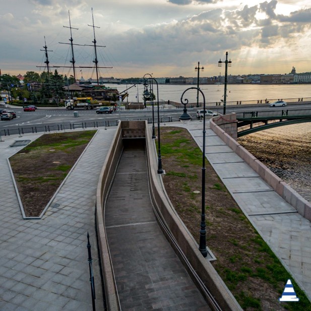 У Биржевого моста в Петербурге открылся подземный тоннель для пешеходов, который позволит создать единый пеший маршрут от Тучкова моста до Кронверкской набережной и Петропавловской крепости. В новом переходе предусмотрена система обогрева, которая позволит избежать образования наледи.