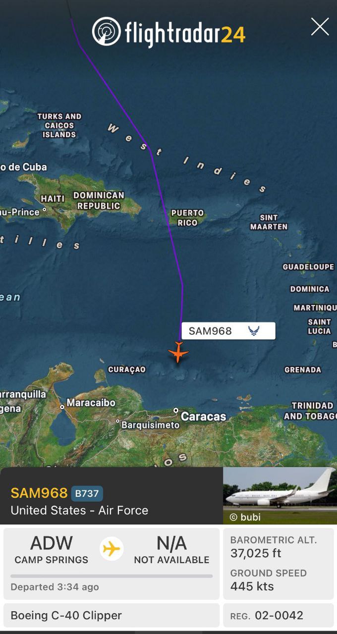Американский правительственный самолёт Boeing C-40 приземлился в столице Венесуэлы городе Каракасе, что стало первым подобным эпизодом за последние годы.