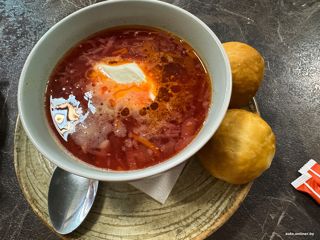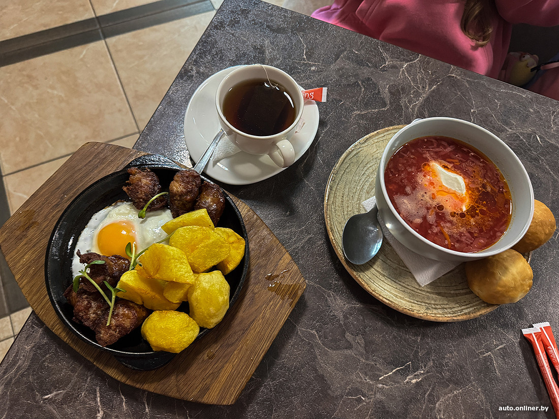 За плотный обед на двоих отдали 47,50 рубля. Честно говоря, во второй раз ради еды с такими ценами, наверное, не заехали бы. К слову, еще пару часов мы ощущали не очень аппетитный «столовский» запах от нашей одежды. Придорожным кафе нужно что-то делать с вытяжками, это точно.