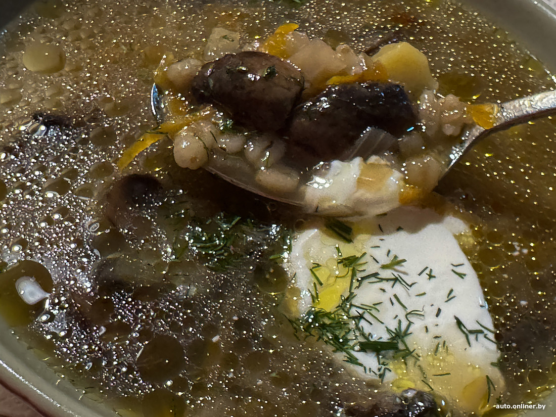 Заказываем этот самый теплый салат, шницель с пюре и перловый суп с грибами. Не смогли обойти стороной десерты: их в придорожных заведениях встретишь редко, а тут вам и медовик собственного производства, и штрудель с пылу с жару. Не у всех блюд в меню были указаны конечные цены: в некоторых случаях написали стоимость за 100 грамм позиции. В случае с тем же штруделем это странно.