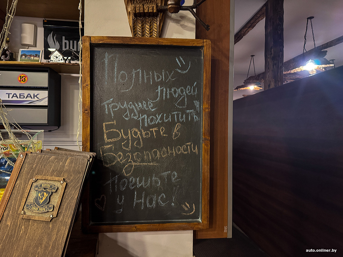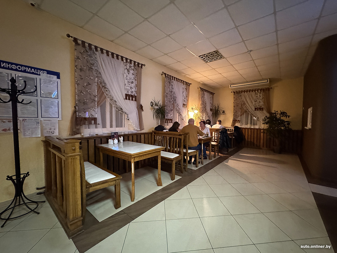 Трасса М1 на фоне М4 и М5 пестрит различными объектами придорожного сервиса. В основном примерно одинакового ценового сегмента. Мы уже побывали в кафе «Ля гасцінца» с белорусско-армянской кухней, во «Встрече» с вкусными пельменями и в заведении с названием в честь магистрали, вдоль которой оно располагается.