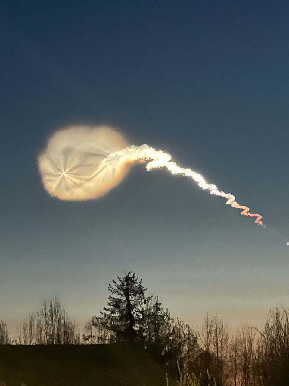 ВКС России несколько дней назад запустили ракету "Союз 2.1б" со спутниками "в интересах Минобороны", сообщало ведомство. На фото — её след в небе.