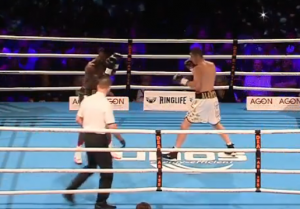 Гость дважды брал колено в 1-м раунде, окончательно капитулировал во 2-й трёхминутке.