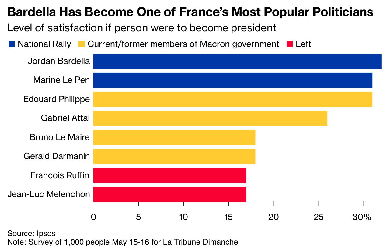 Не сильно лучше обстоят дела для него и в президентской гонке. Два самых популярных кандидата в лидеры Франции - Джордан Барделла и Марин Ле Пен. Они оба обходят по рейтингам нынешнего премьера Габриэля Атталя и прочих либеральных центристов, кем попытаются заменить Макрона.