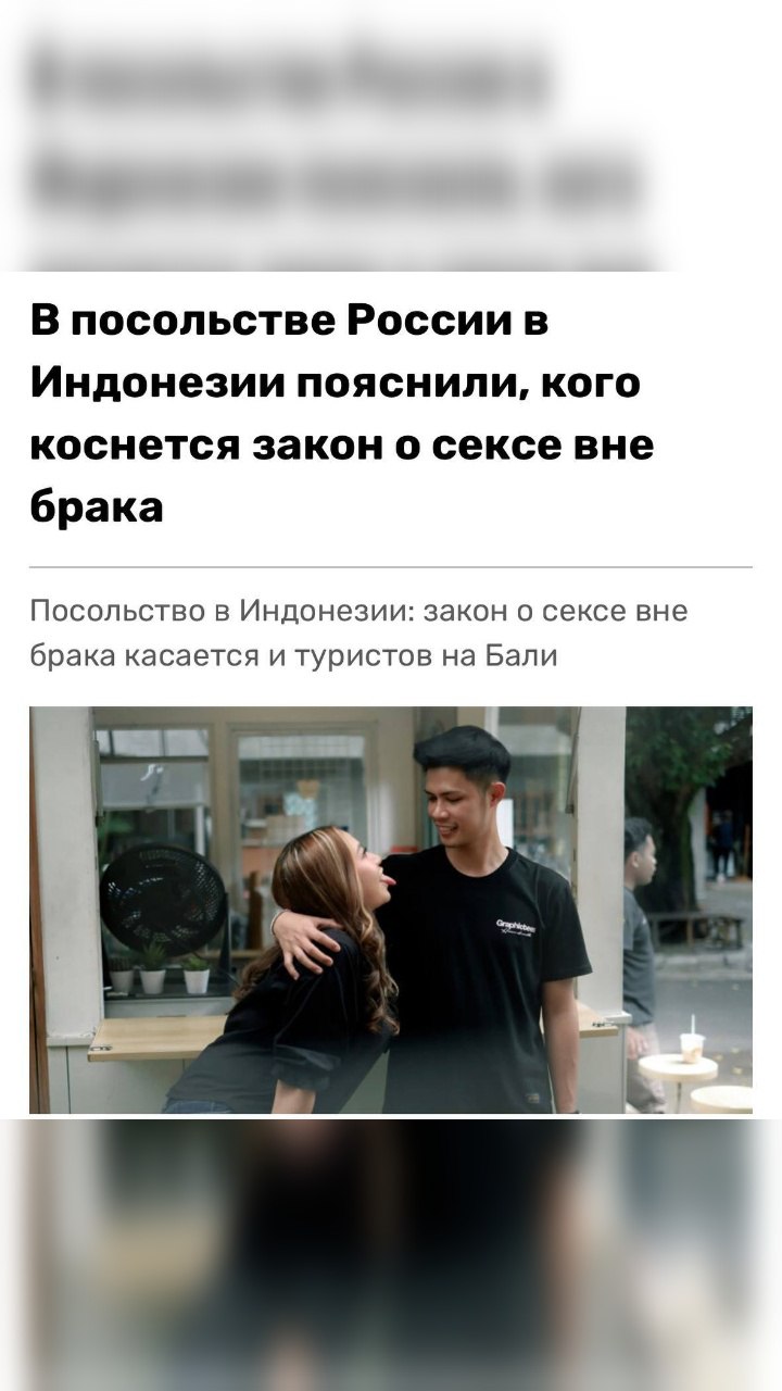 ⚠️ На Бали запрещено заниматься сексом вне брака, за это россиян будут отправлять в тюрьму, напомнили в посольстве