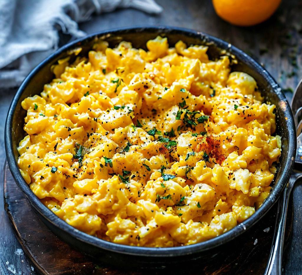6. Яйца не должны выглядеть сухими, как стандартная омлетная масса. Консистенция блюда — кремообразная.