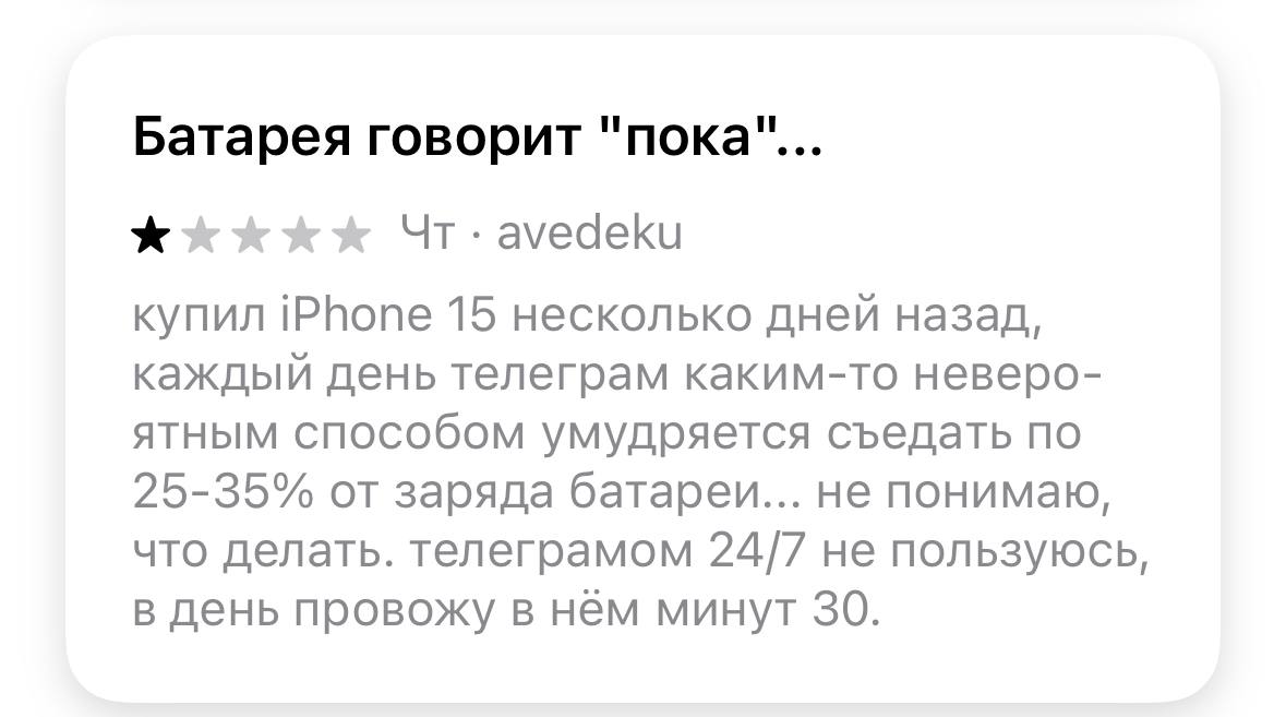 🟠Батарея свежего iPhone 15 Pro Max садится на 30% за 30 минут;