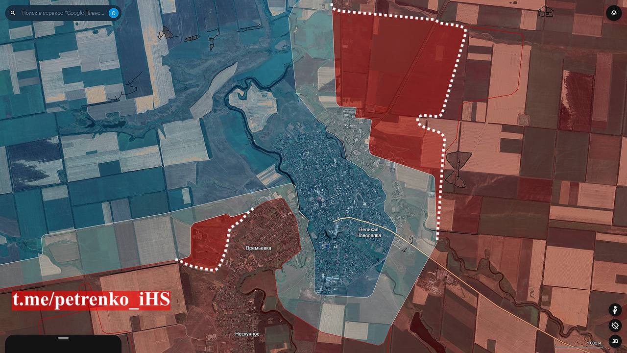 Пока что там сохраняется организованное сопротивление. Противник пока еще пытается оборонять пгт, но учитывая оперативно-тактическую ситуацию на флангах, Великая Новоселка уже обречена.