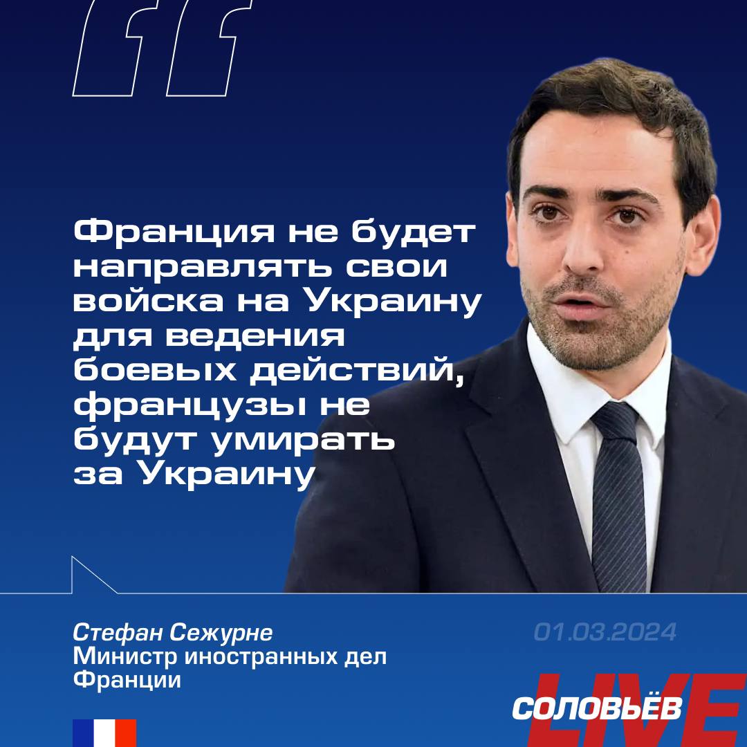 Глава МИД Франции Стефан Сежурне заявил что французы не будут умирать за Украину, а только наоборот.