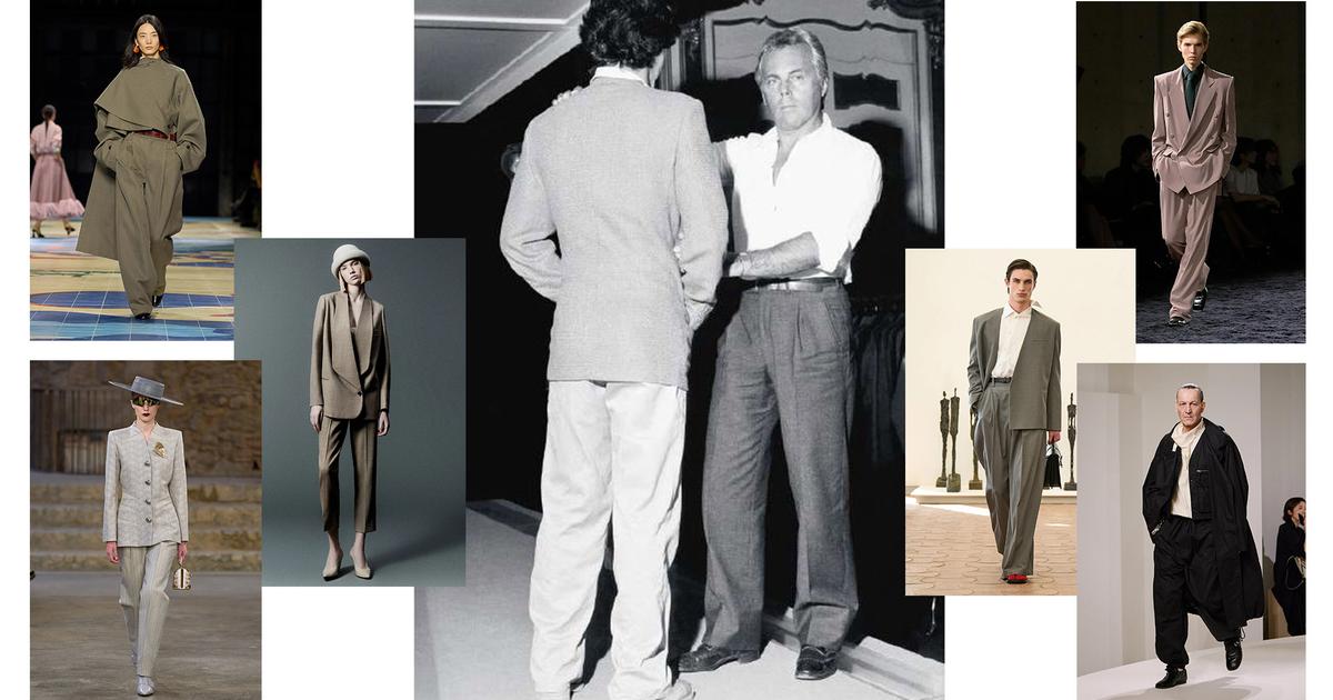 Début février, alors qu'on demandait à Matthieu Blazy, 40 ans, le directeur artistique de Bottega Veneta (et l'une des révélations des défilés de ces trois dernières années), s'il était encore possible dans la mode contemporaine de bâtir un style sur la durée, il répondait du tac au tac : « Oui, regardez Armani. Durant le dernier show de l'homme (un mois plus tôt, NDLR), j'ai vu des costumes qui frôlaient la perfection, chapeau bas. » Le 5 mars, peu avant son show Saint Laurent de l'hiver 2025 à la Bourse de Commerce, Anthony Vaccarello, 42 ans, disait aux journalistes au sujet de la silhouette très fluide, sans entoilage, ni doublure : « Ça donne à cet homme un côté Patrick Bateman dans American Psycho » - le golden-boy psychopathe de Bret Easton Ellis étant griffé Armani de pied en cap… Le 10 juin, peu avant son défilé présenté à la Villa Malaparte, à Capri, Simon Porte Jacquemus, 34 ans, qui était interrogé sur son look favori, lançait avec beaucoup de spontanéité …