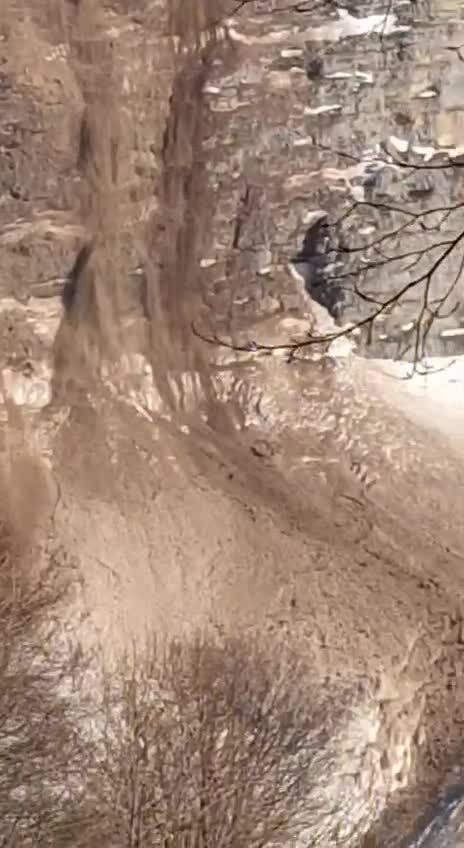 Такое бывает раз в 100 лет. Опубликованы кадры лавины, которая сходит с горы Фишт на Кавказе