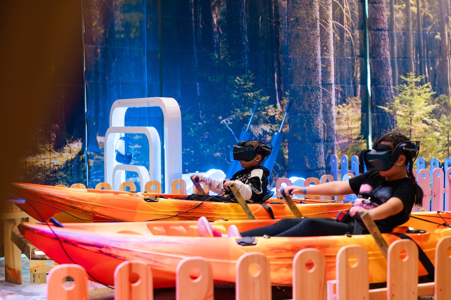 Большой выбор активностей и занятий в досуговом центре не оставил ни одного ребенка равнодушным. Здесь ребята смогли проявить свою ловкость, реакцию и просто поиграть. Особый интерес вызвали VR-зоны: юные испытатели бесстрашно пробовали себя в полете на параплане, управляли квадроциклами и каяками, а также смогли пообщаться друг с другом и завести новые знакомства.