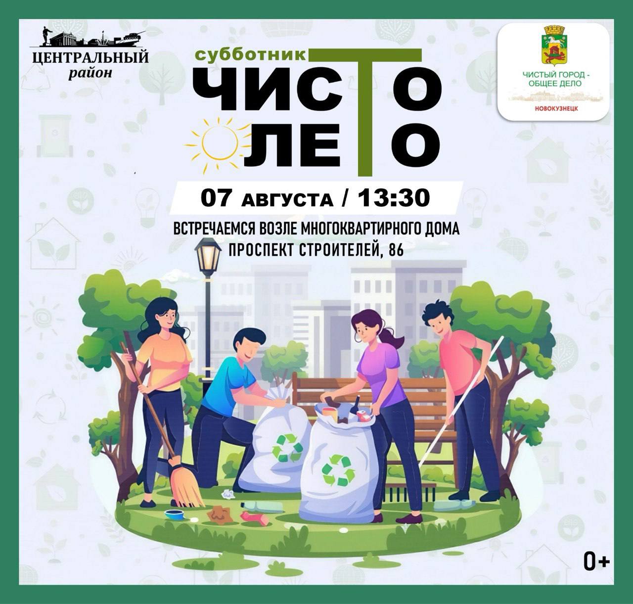 «Присоединяйтесь, чтобы вместе сделать город чище, уютнее и красивее! Это отличный способ позаботиться о природе, встретиться с соседями и друзьями, провести время с пользой. Надевайте удобную одежду и обувь и берите отличное настроение!