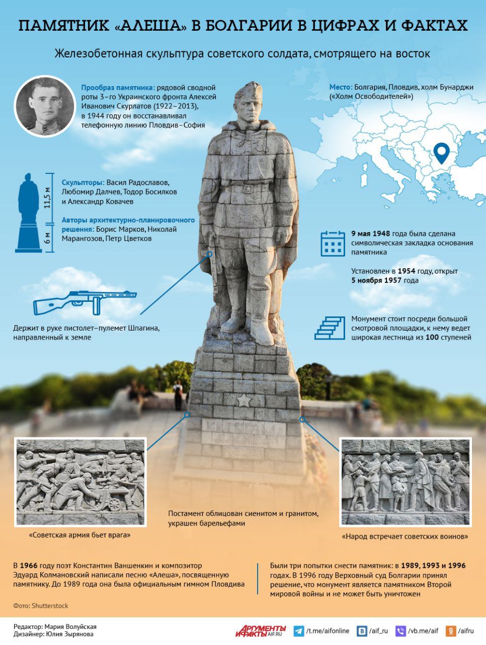 Двое болгарских депутатов предложили демонтировать памятник советскому воину-освободителю "Алеша" в городе Пловдив, прообразом которого является мой покойный двоюродный дед Алексей Скурлатов.