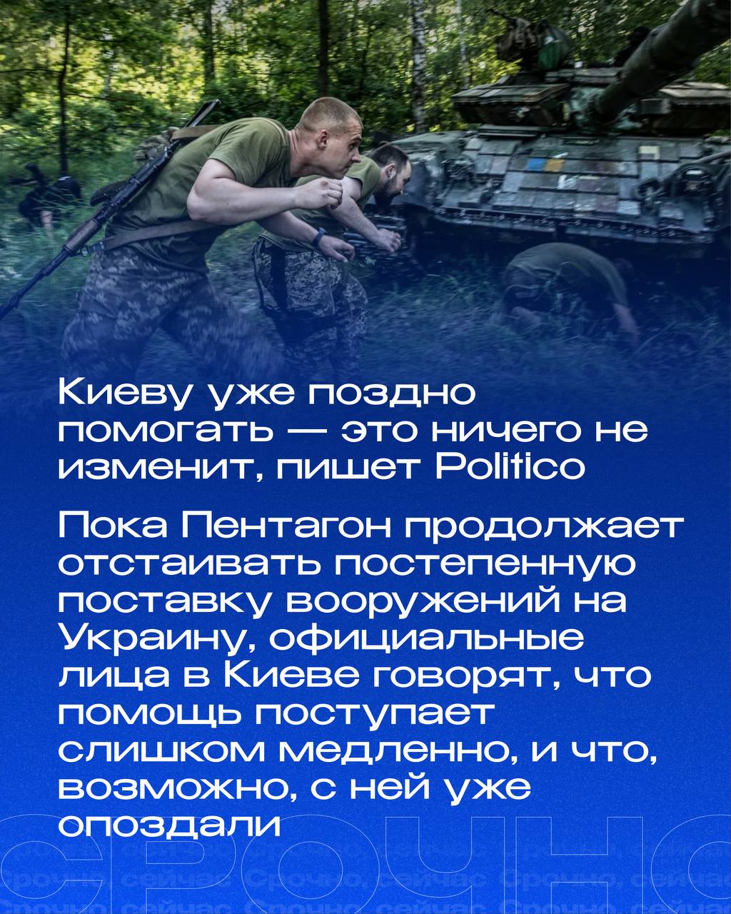 Politico со ссылкой на украинских чиновников пишет, что Запад опоздал с помощью Киеву. Она поступает слишком медленно. И какую бы помощь НАТО не оказала Украине — уже поздно пытаться переломить конфликт пользу ВСУ☝🏻