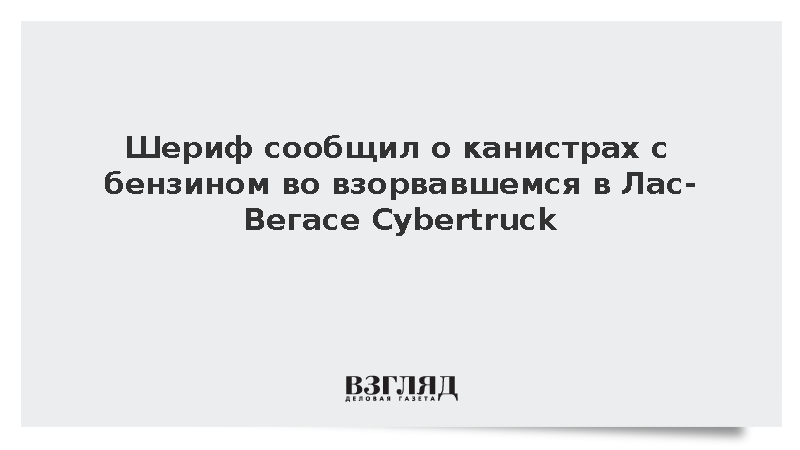 В электрическом пикапе Tesla Cybertruck, который взорвался у отеля Trump International Hotel в Лас-Вегасе, были канистры с бензином и пиротехника, сообщил местный шериф Кевин Макмэхилл.