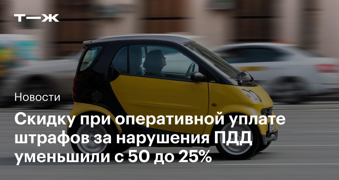 Сейчас водители могут заплатить штраф со скидкой в 50%, если сделают это не позднее 20 дней с даты вынесения постановления. Эту скидку решили уменьшить до 25%. Но срок ее действия увеличили до 30 дней. Например, при штрафе в 1000 ₽ водитель сможет заплатить только 750 ₽.
