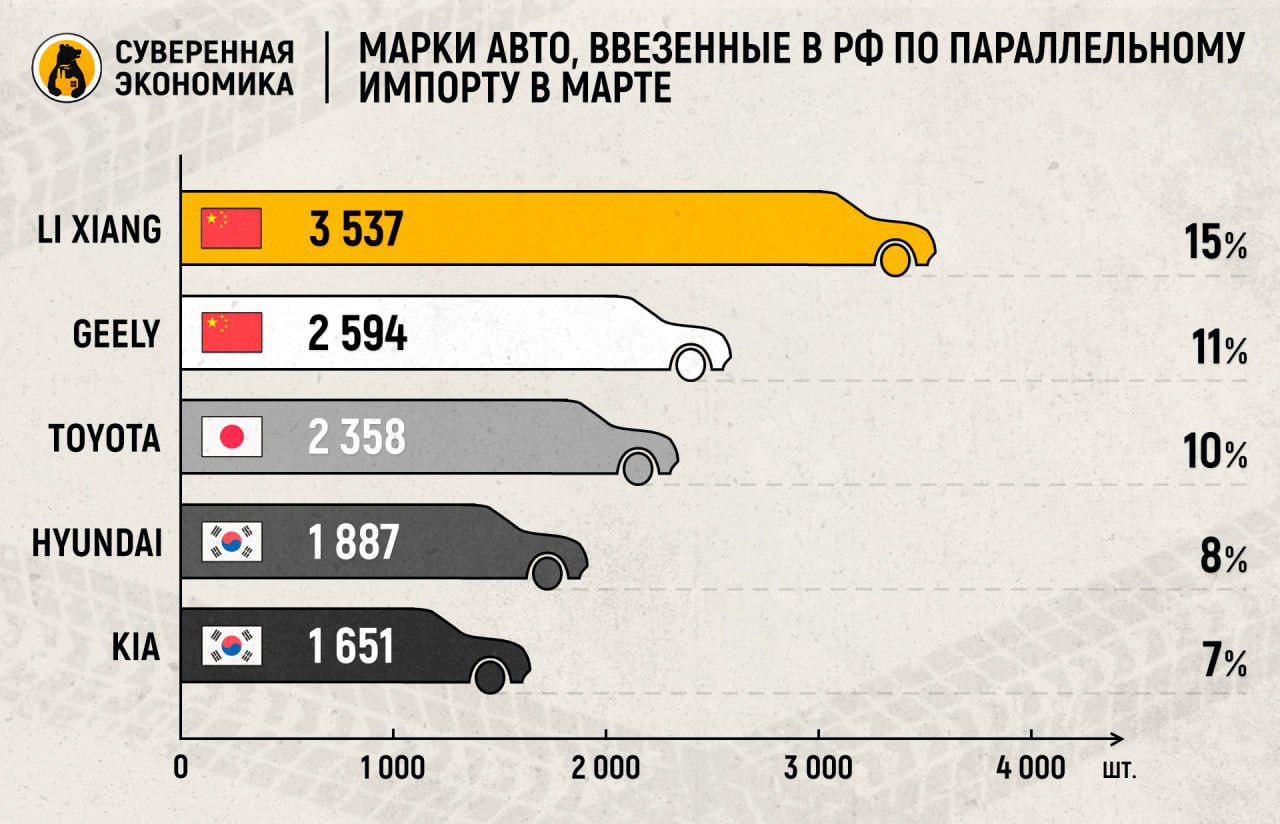 Доля авто, ввезенных неофициально, составила 15% от регистрации всех легковых машин в РФ. Таким способом в Россию попало 23,6 тыс транспортных средств. Предыдущий рекорд был в феврале — 16,9 тыс автомобилей.