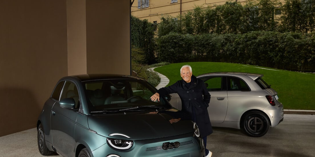 Disponible en dos colores, verde oscuro y ceramic Greige, este vehículo respetuoso con el medio ambiente presenta varios detalles que hacen un guiño a la firma de lujo, como el logo 'GA' en las llantas y los asientos, la firma del diseñador de moda en el salpicadero, el interior de las puertas y la luneta trasera y pantalla de inicio personalizada y música de Giorgio Armani en la radio.